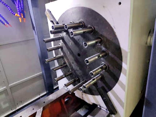 機床優(yōu)勢 :采用數(shù)控系統(tǒng)可同時對閥門雙法蘭所以孔一次性鉆孔,省時省力。